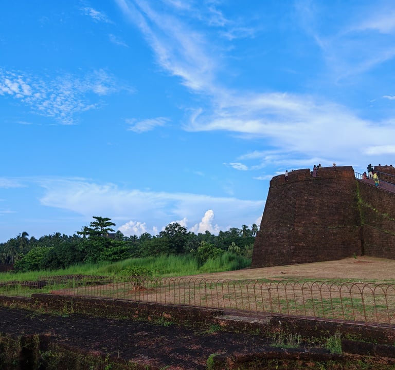 "Bekal Fort awaits in Kerala’s Kasaragod—majestic, keyhole-shaped, and surrounded by scenic beaches for an unforgettable day trip."